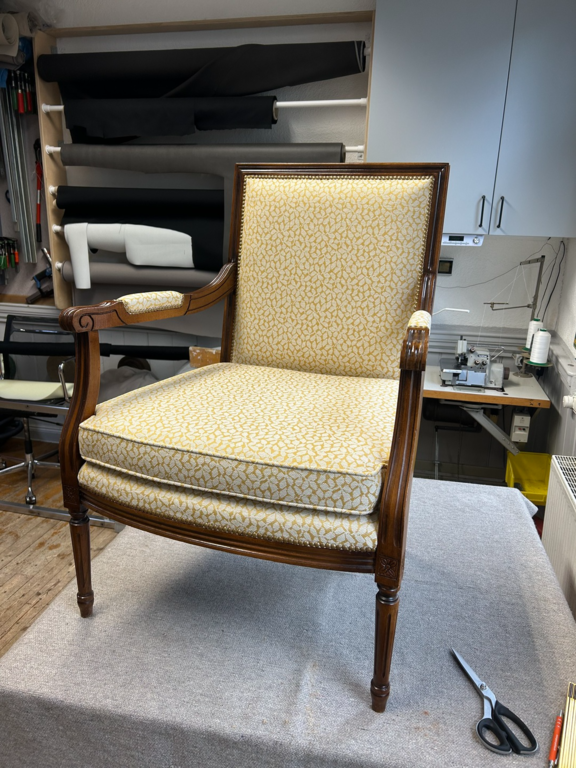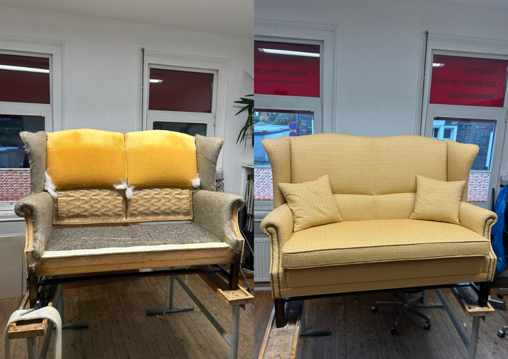 Wir reparieren und polstern die Möbel fachgerecht wieder auf. Dazu verarbeiten wir ausschließlich hochwertige Materialien.